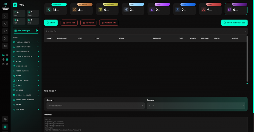У Telegram Expert робота з проксі побудована як окремий рівень керування: