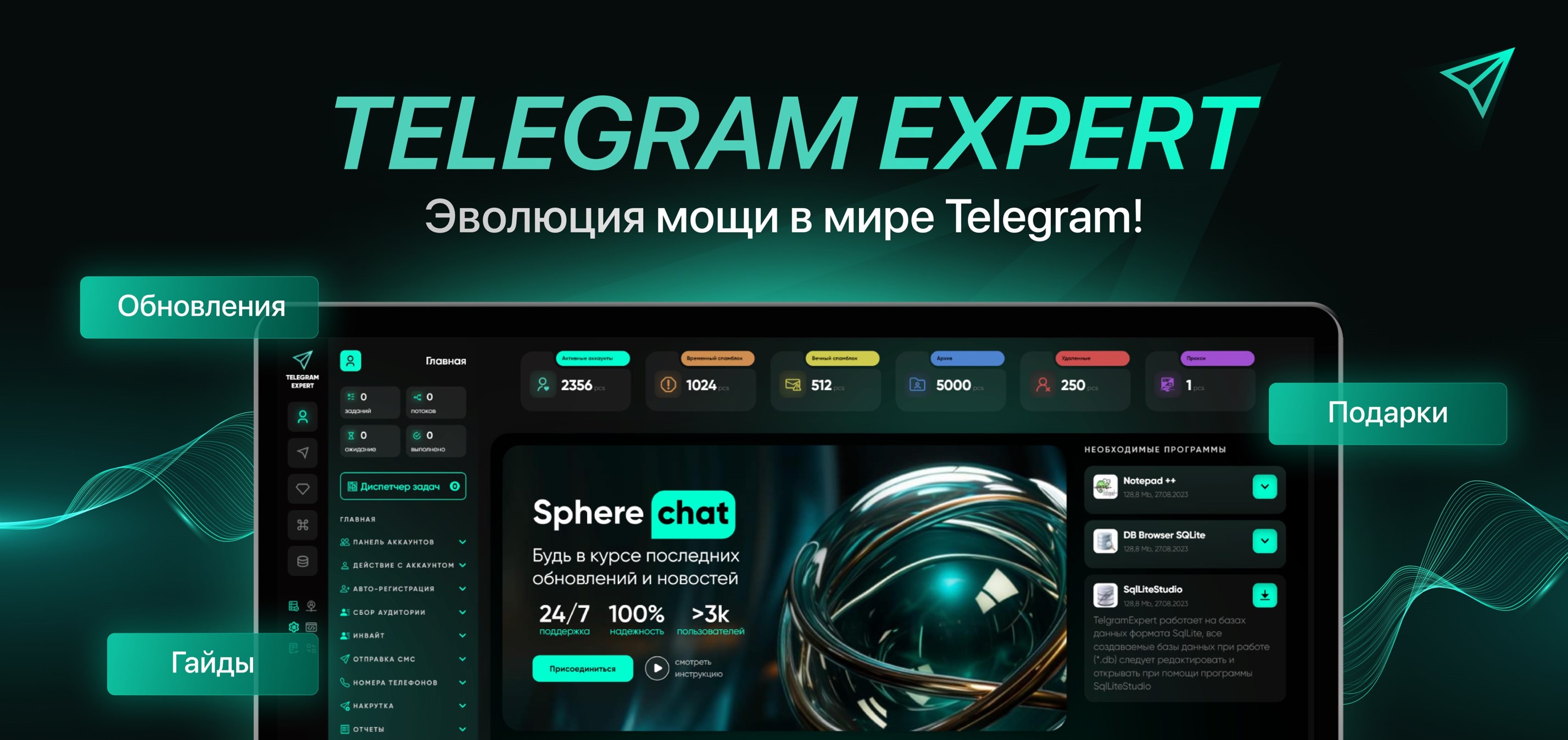 Telegram Expert — профессиональная система для комплексной работы в Telegram: регистрация аккаунтов, рассылки, инвайты, парсинг, аналитика, прокси и безопасное масштабирование без хаоса.