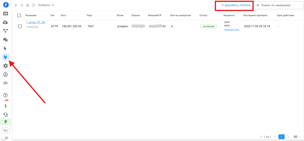 Копируем IP, логин и пароль из кабинета и добавляем в кабинет Dolphin Cloud по одной из форм.