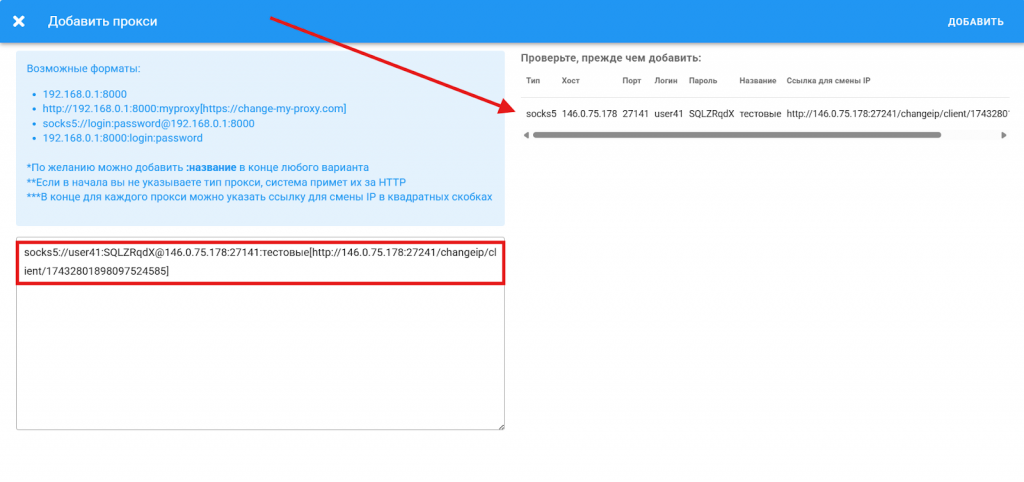 - прокси. Их можно выбрать из списка, а можно ввести прямо при добавлении;