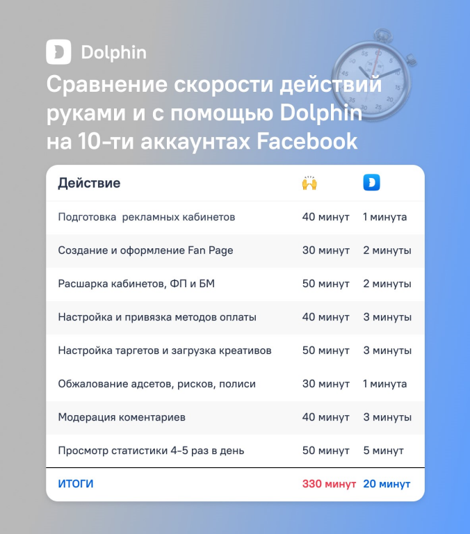 Но рутину легко преодолеть с помощью инструментов автоматизации. Один из них — Dolphin Cloud, который позволяет дублировать запуск рекламы в любом количестве рекламных аккаунтов.